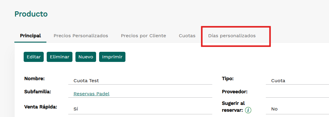 Personalizada: Nos Ofrecerá la cuota las fechas que especifiquemos desde la pestaña de 'Días Personalizados' de la propia cuota.