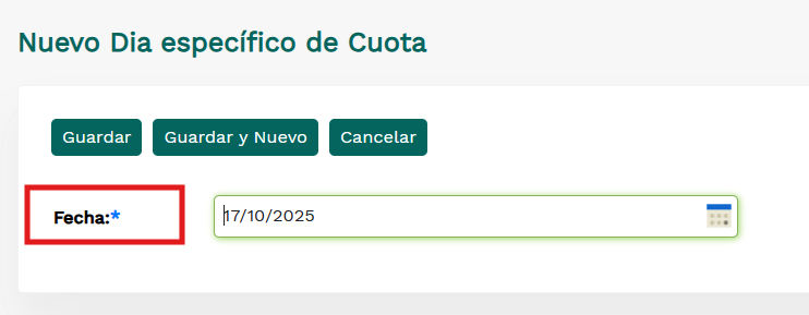 Subfamilia: Seleccionamos del desplegable la subfamilia a la que irá asociada esta nueva cuota.